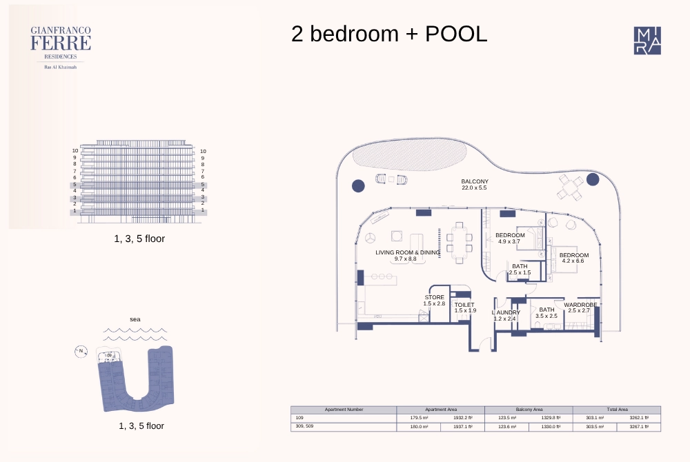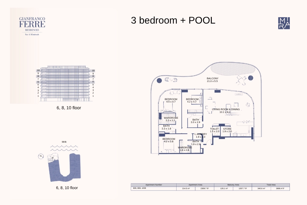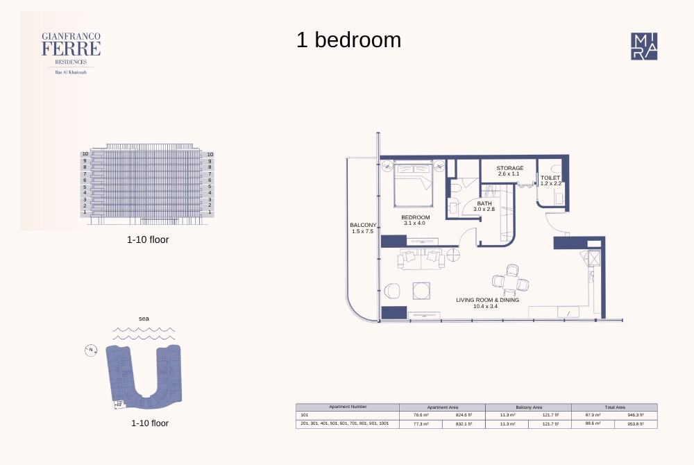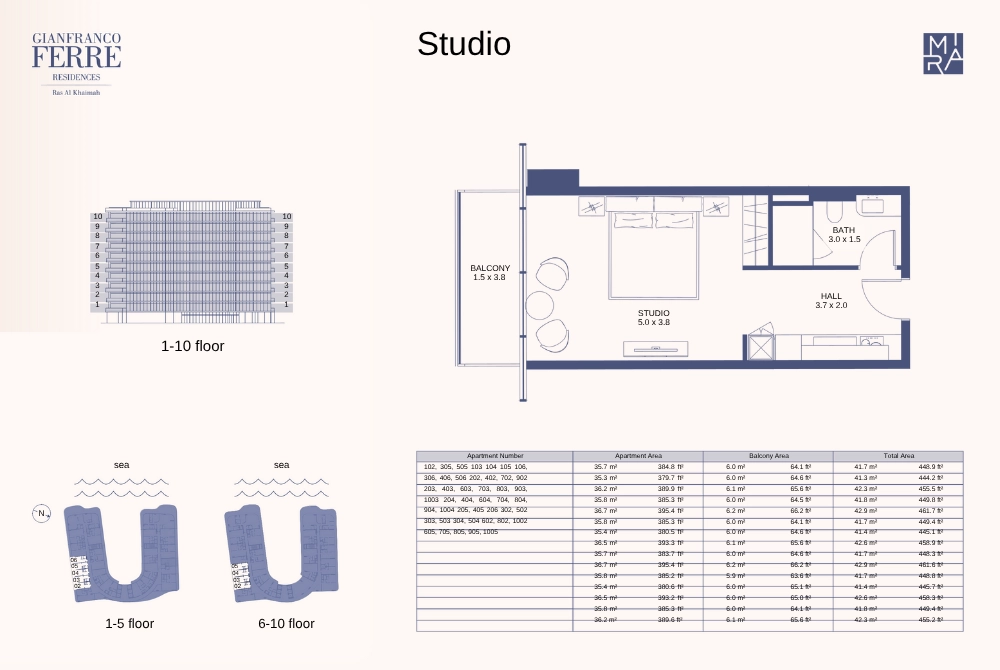 Mira Gianfranco Ferre Residences in Ras Al-Khaimah, an architectural gem set to grace the coastline by 2025, seamlessly blends modern design with traditional elements. This elegant U-shaped development offers an unmatched living experience across meticulously crafted studios, luxurious 1 bedroom apartments and spacious 2 & 3 bedroom apartments.