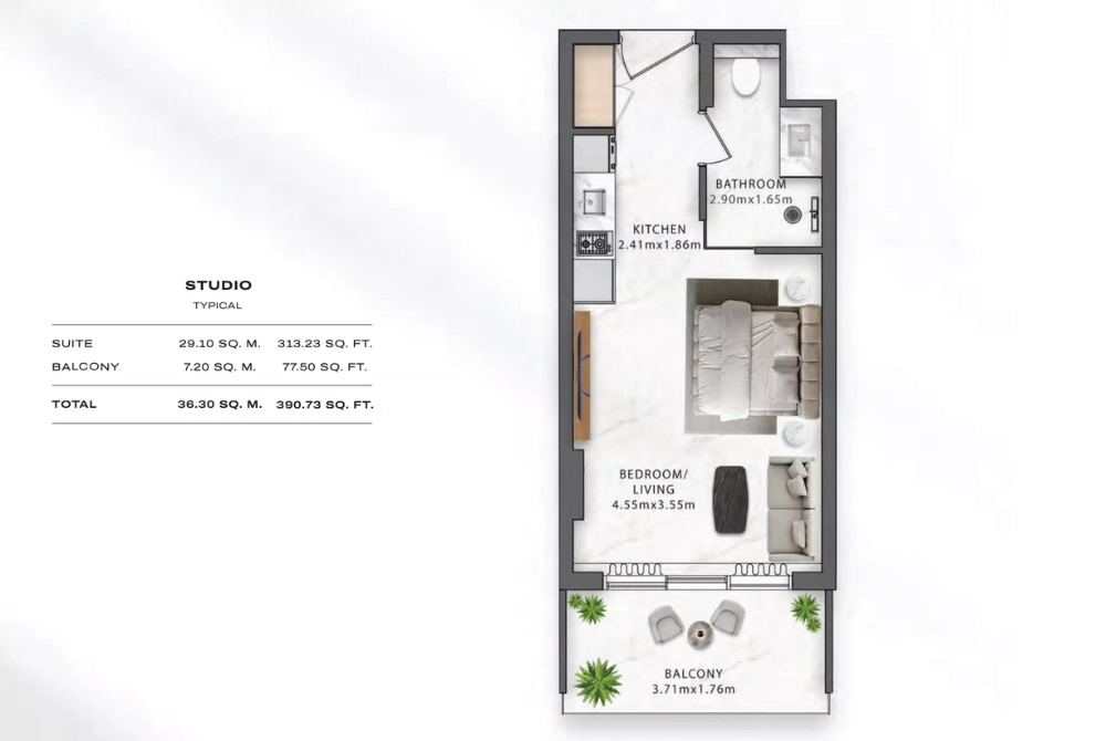 Pantheon One Centra apartments floor plans feature studios, 1 & 2 bedroom apartments. Each apartment gives you great views of the green areas around and the city skyline. The modern design goes hand in hand with top-notch features to meet all your needs.