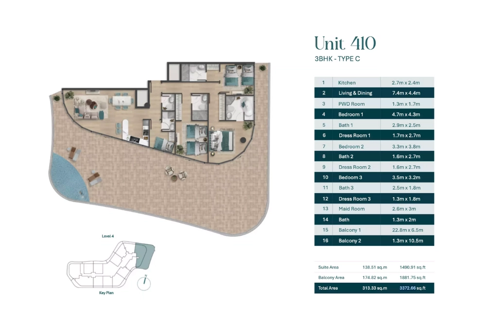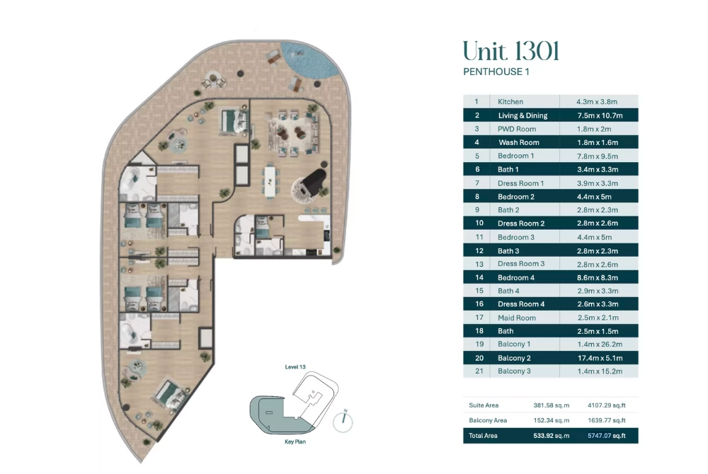Floor Plan of BnW Pelagia 1, 2 & 3 bed luxury apartments and 4 bed penthouses to suit every need. Each unit here offers open layouts, luxurious features, and exceptional comfort. Floor-to-ceiling windows showcase stunning views and fill the spaces with natural light. Sophisticated kitchens and luxurious bathrooms create an elegant ambiance, while private plunge pools on exclusive terraces define the ultimate penthouse experience.